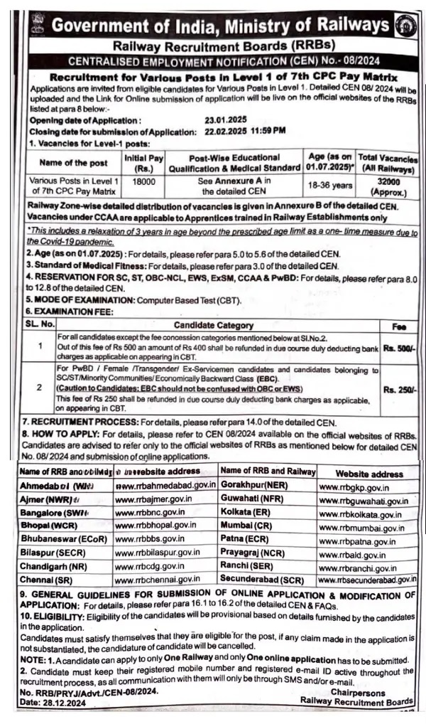 UPDATE- The Short Notification of RRB Group D Notification 2026 vide CEN 09/2025 for 22000+ vacancies is announced on 23rd December 2025.
